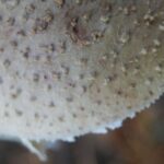 Amanita / With a partial veil, flesh colour changing in insects wounds